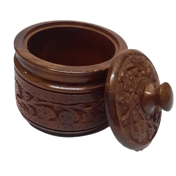 Wooden Bowl with Flower Pattern
